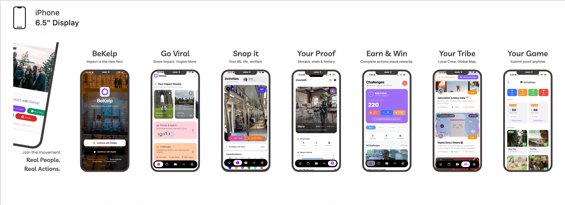 BeKelp is an AI-powered social app where every real-world IRL action — chai at the corner tapri instead of Starbucks, a 5km morning run, helping the kids in your building learn, buying refurbished, renting a fit instead of fast fashion, or just taking the train — gets snapped, scored across multiple impact dimensions by our AI, and becomes your living social identity(we have big plans for this identity).